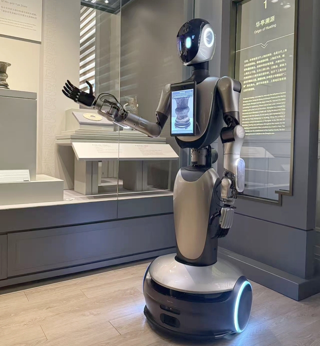 目前,轮式导览机器人已具备智能讲解、多人声纹交互、3D避障导航等功能,游客只需扫码呼唤“小游小游”,即可获得专属陪伴服务。