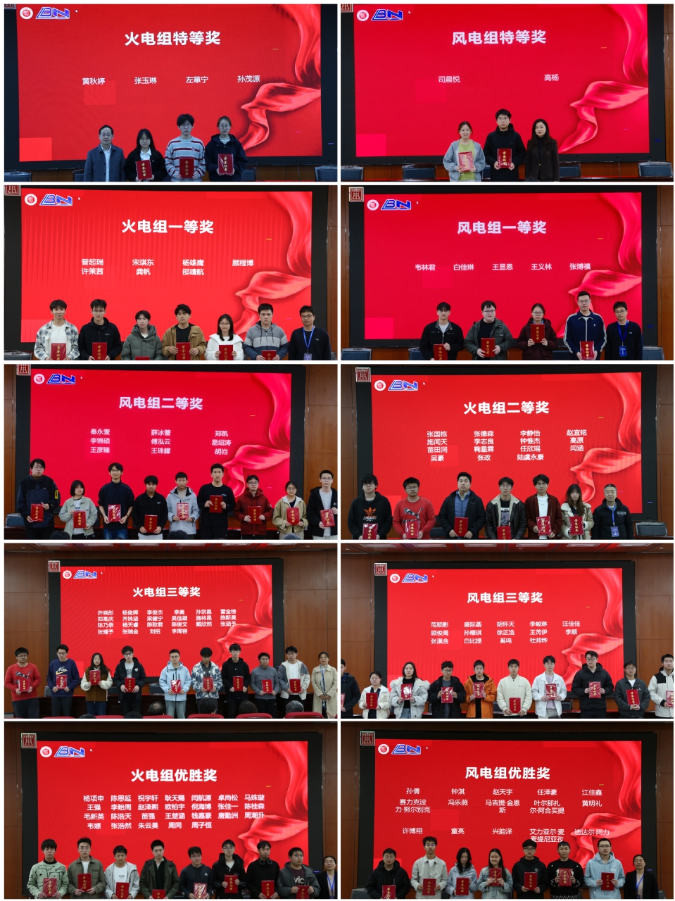 经过紧张激烈的竞技比拼,本次竞赛圆满完成各项赛程。闭幕式在庄重热烈的氛围中举行,大会依次揭晓火电组、风电组获奖名单,并为获奖学子现场颁奖。本次竞赛累计吸引119名学生踊跃参赛,其中火电组74人、风电组45人,经严格评审,择优评选出特等奖、一等奖、二等奖、三等奖及优胜奖若干名,充分彰显了上电学子扎实的专业功底与优良的竞技风貌。
