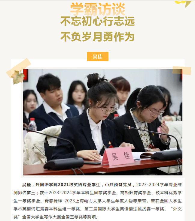 学院借助微信公众号、风采展示墙等平台多维度宣传优秀学生学习经验、获奖典型先进事迹等,全面激活朋辈群体的示范引领效应。围绕课程学习、学科竞赛、考研升学、求职面试等内容组织策划经验分享交流会,着力引导学生以优秀典范为榜样,系统构建个人学业发展路径,提升学生综合素质与核心竞争力。