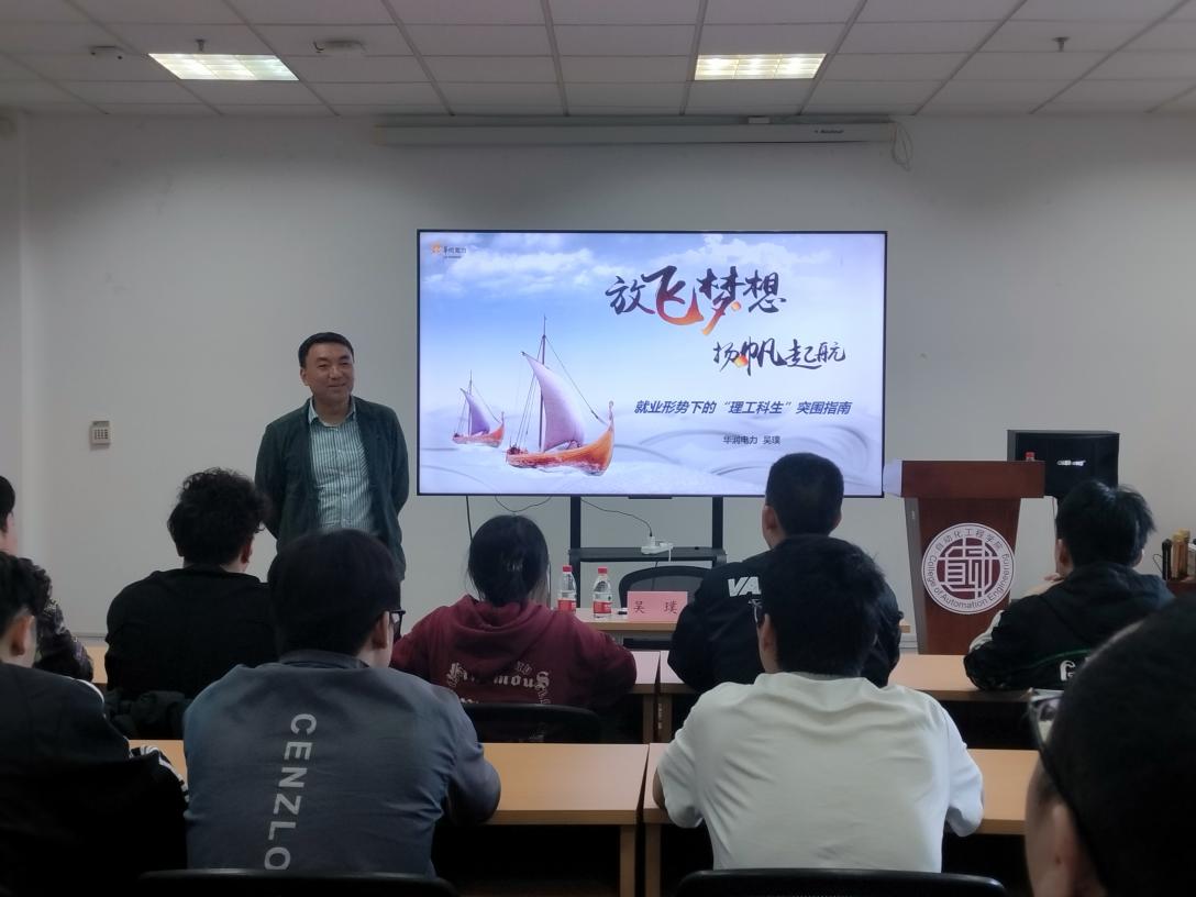 会前,吴璞作“走近国企HR:当前就业形势下的‘理工科生’突围指南”主题讲座。他结合电力行业国企用人需求,剖析当前就业趋势;聚焦“入职后如何持续成长”的话题,分享新人在企业中的成长路径、常见困惑及破局方法,帮助学生在未来的职业道路上更加从容、自信地迈进。互动环节,吴璞与学生在职业素养及职业发展路径等问题上进行交流,并对学生简历进行指导。