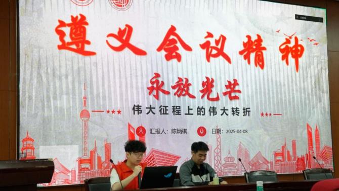 陈炳棋作为自彩飞扬理论宣讲团成员,以“遵义会议精神永放光芒”为主题面向大一学生进行宣讲,带领同学们学习遵义会议故事,回顾“五次反围剿战斗”“湘江战役”等重要历史节点,感悟“坚定信念、坚持真理、独立自主、团结统一”的遵义会议精神。