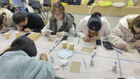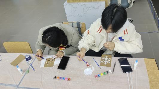 在匠心非遗板块,工作室通过节气梳理,配合相关非遗传统文化活动,如小雪时节,一场“盐绘冬韵”盐画创作活动在校园内悄然展开。活动现场,大家用细盐,以独特的艺术视角和精湛的创作手法,在画板上勾勒出一幅幅生动的冬日图景,每一幅作品都凝聚着创作者对小雪节气的理解与感悟。盐画作为一种小众却极具特色的艺术形式,不仅让大家感受到了艺术创作的乐趣,更在动手实践中体会到冬日的诗意与浪漫,为寒冷的季节增添一抹温暖的艺术色彩。