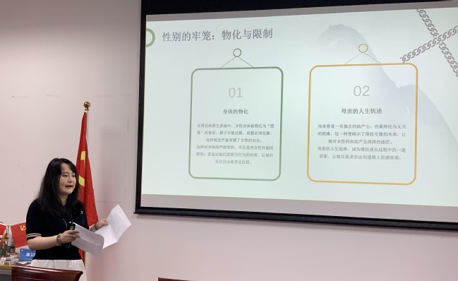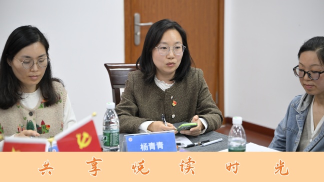 姜妍丽就第四学生党支部队伍结构和建设成果进行介绍,展现党建引领下的基层活力,希望通过“电韵书香读书会”建设好书香党支部,通过共建更好发挥支部党员的先锋模范作用,将“我为群众办实事”落到实处。刘峻介绍社团“阅读促党建、以经典育新人”的建设背景和宗旨。