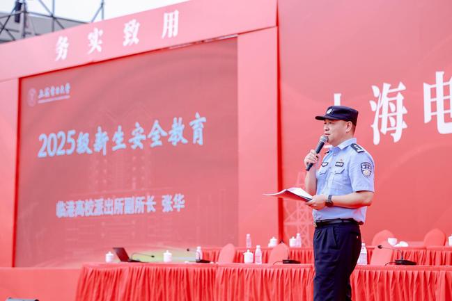 9月15日,上海电力大学2025级全体本研新生在临港校区体育场共同参与了一场以“安全护航青春 共筑平安校园”为主题的入学安全教育专题活动。活动特别邀请临港高校派出所副所长张华、浦东新区禁毒办二级警长徐慧明担任主讲嘉宾,通过警校联动,以“案例教学+科技赋能+机制保障”的创新模式,为新生送上了一堂生动实用的“安全必修课”。