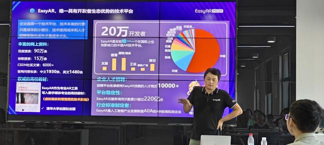 微课程开课首日,视+AR联合创始人、副总裁兼COO涂意围绕“元宇宙与空间计算技术”做主题报告。他从互联网演进历程切入,系统阐释了元宇宙作为下一代互联网形态的核心特征与发展趋势,并指出空间计算是实现虚实融合、打造沉浸式体验的关键技术支撑。涂意重点介绍了EasyAR Mega空间计算平台的整体架构与典型应用场景。该平台不仅提供高精度地图构建、大规模环境感知、实时定位与动态跟踪等核心能力,还广泛服务于工业制造、文化展览、智慧零售等领域。他提到,基于EasyAR Mega开发的应用可帮助工程师在设备上实时查看参数与操作指引,或在博物馆实现文物“数字复活”,增强观众互动体验。在理论教学的同时,涂意还指导学生完成平台账号注册与环境配置,为后续开发实践奠定基础。