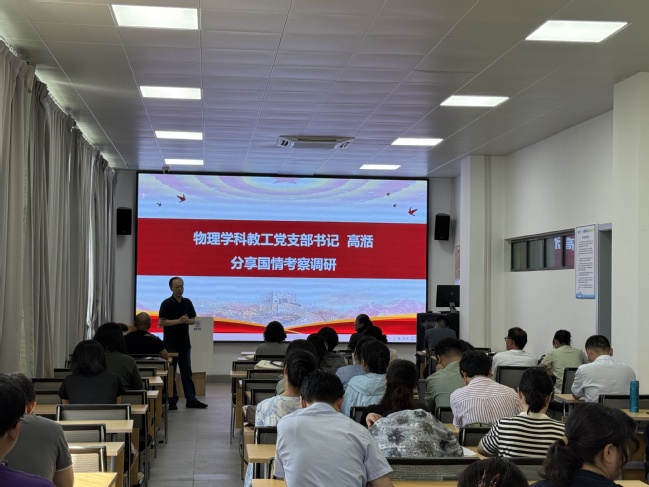 物理学科教工党支部书记高湉老师与数学系骨干教师吴泉军老师,聚焦教育者如何胸怀“国之大者”,分享了暑期深入一线的国情考察见闻。他们深刻阐述了如何将国家发展的宏大叙事、社会现实的生动案例,有效转化为课堂教学的鲜活素材与科研攻关的现实导向。他们的分享体现了学院教师自觉将个人学术追求融入国家发展大局,将知识传授与价值引领深度融合,致力于培养具有家国情怀与实践能力的时代新人。