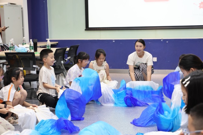 人文艺术学院依托区域化党建平台——临港新片区市民文化艺术(体验)基地,暑期开展“童蒙养正雅艺美行”人文艺术夏令营,招募临港新片区企事业单位职工子女共约80名,围绕八大主题开设诗词吟诵、传统礼仪、创意美术等课程,用美育实践助力青少年文化认同与人格塑造。