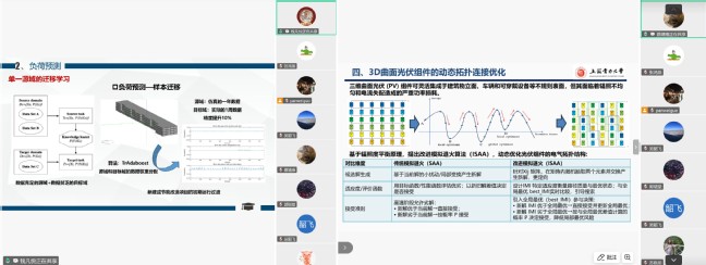 随后,三位教师代表分享前沿研究成果,展现团队在低碳能源、AI+能源领域的技术突破。针对传统光伏组件适配复杂曲面难的问题,蔡靖雍副教授建立了多尺度多物理场模型,揭示了曲面光伏辐照分布规律,优化了组件串接结构,开发的“曲面光伏-通风幕墙-热泵”复合系统,为建筑光伏一体化、应急能源场景提供新方案。钱凡悦博士后聚焦需求侧能源系统精细化调控,引入迁移学习技术,解决分布式能源系统数据稀缺、个性化差异大的痛点,通过优化算法与模型,大幅提升负荷预测精度与故障诊断效率。针对电力巡检安全风险高、效率低的问题,冒建亮副教授研发了变电站双臂移动机器人与输电线路爬行机器人,集成视觉定位、强化学习等技术,攻克复杂操作难题,已在南方电网示范应用,并亮相2025年世界人工智能大会,为“机器人+能源”战略落地提供技术支撑。