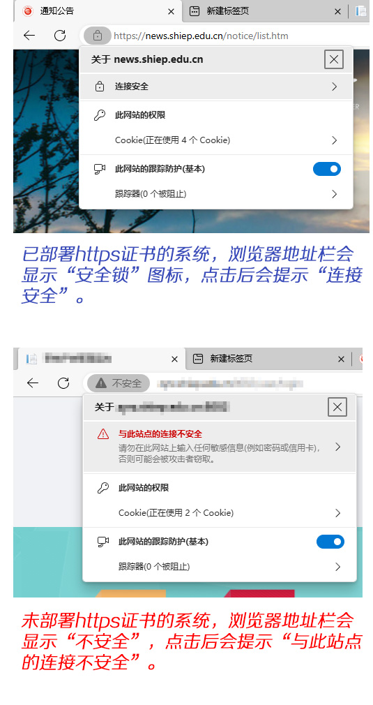我校校园网HTTPS证书将于2025-11-20到期,目前新版证书已经签发,请有需要使用的老师前往信息化与数据管理中心登记领用。领用时需提供:信息系统名称、域名、IP地址、服务器类型(Apache/Nginx/Other)信息,建议向系统建设运维单位了解。已通过学校安全网关统一防护的系统,学校将统一更新证书,无须单独领用。