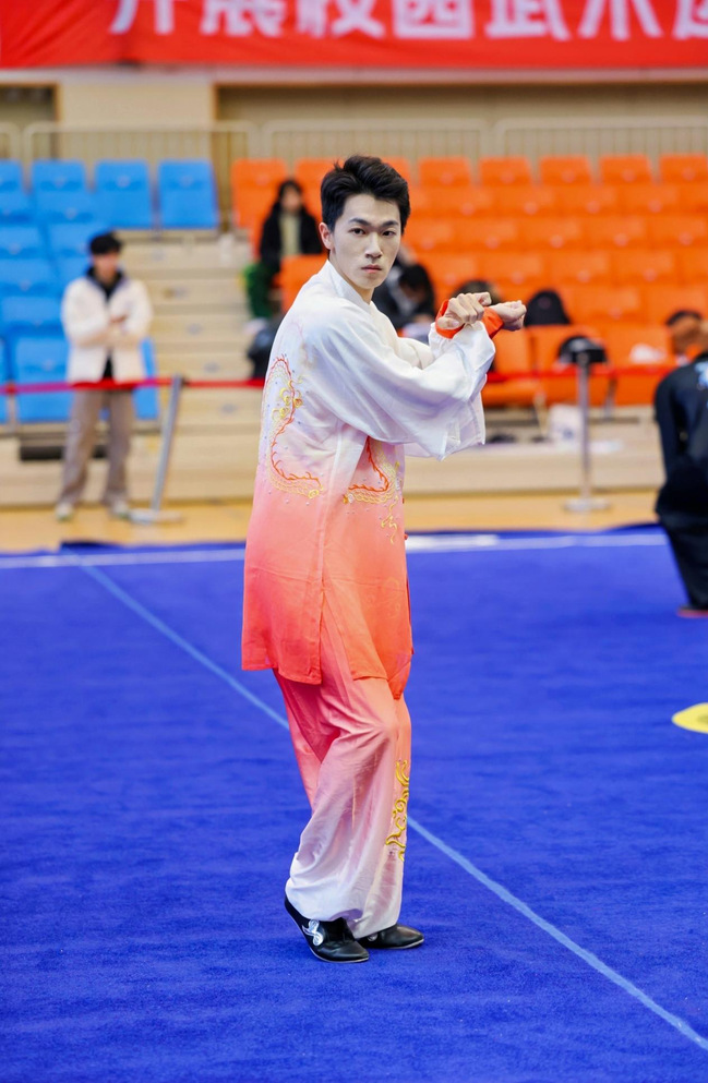 本次锦标赛设自选拳术、自选器械、传统拳术、传统器械四大项目,竞争十分激烈。我校共派出八名运动员参与角逐,面对众多强劲对手,他们沉着冷静、敢打敢拼,最终张茗昊凭借扎实的功底与稳定的发挥脱颖而出,荣获男子甲组太极剑第一名。那一枚沉甸甸的金牌,不仅代表着个人荣誉,更承载着整个团队无数日夜的付出与期待。王俊博荣获男子甲组龙身蛇形太极拳第二名、刀术第四名,他这一抹银徽,同样凝聚着不屈的斗志与无悔的青春。此外,汪家可荣获女子甲组太极剑第四名,唐栎淇荣获女子甲组龙身蛇形太极拳第四名。