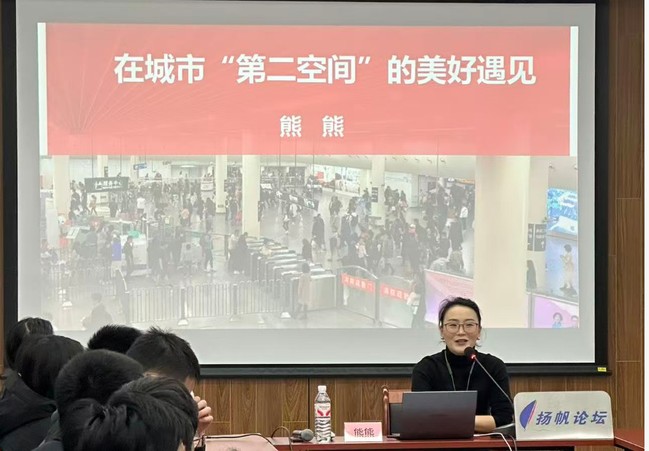 熊熊站长以“城市第二空间的美好遇见”为题展开讲座,她指出,地铁作为现代城市的“第二空间”,不仅是交通动脉,更是观察社会、感知文明的窗口。自2002年入职以来,她从票务维修、设备管理等基层岗位起步,逐步成长为站务员、值班站长,最终肩负起人民广场站这一城市核心枢纽的管理重任。讲座中,她结合自身成长经历,生动诠释了“把平凡岗位做到极致就是不凡”的劳模精神——从创建“小熊为您服务台”、熊熊“3D”服务创新工作室,用手抄路线图、方言服务等细节破解乘客出行难题,再到打造了“广场白玉兰”“地铁好邻居”等一系列优质服务与党建品牌,她带领团队将日均客流超70余万人次的人民广场站,打造成了有温度、有情怀的“城市第二空间”。