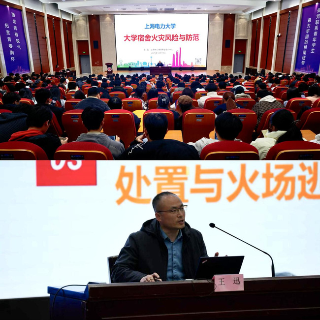聚焦消防安全,筑牢校园防线。上海南方消防职业培训中心王迅老师作《大学宿舍火灾风险与防范》专题辅导,王老师以“警钟长鸣、防患未然、临危不乱”为主题,系统阐述了校园火灾防控的关键要点。首先通过真实火灾案例,直观揭示了火灾对校园安全构成的严重威胁,警示同学们必须时刻保持高度警惕;随后针对宿舍区域常见的火灾隐患,如违章电器使用、锂电池在室内充电等,系统解析了宿舍区域常见火灾隐患的识别方法;最后,重点介绍了初期火灾扑救的基本技能与火场逃生自救的关键技巧,有效提升了寝室长的消防安全防范意识与应急处置能力。