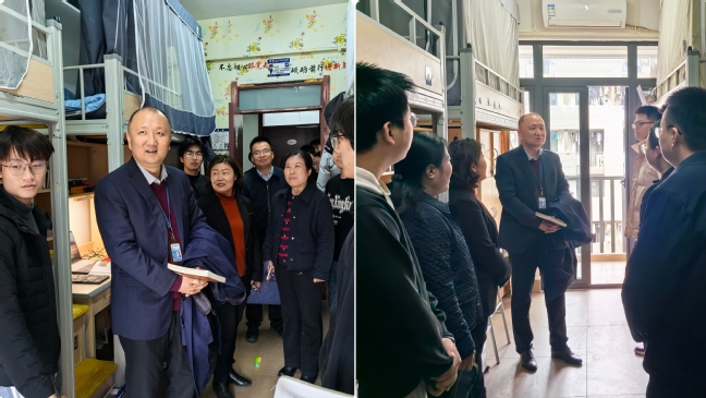 座谈会前,杨宁走访了临港校区2号学生公寓楼,在多个宿舍与同学们面对面交流。他详细询问大家的学习情况、生活状况、未来规划以及遇到的困难。杨宁鼓励同学们继续保持良好的生活习惯,夯实专业基础,注重劳逸结合,加强体育锻炼,积极参与学科竞赛和社会实践,在团队协作中全面提升综合能力。