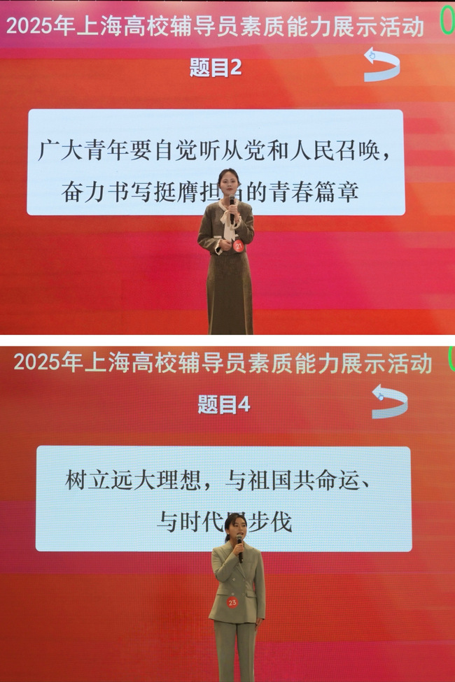 近日,由中共上海市教育卫生工作委员会、上海市教育委员会主办,东华大学和上海市教育科学研究院德育发展研究院承办的2025年上海高校辅导员素质能力展示活动圆满落幕。经过激烈角逐,我校人工智能学部辅导员孙怀芹、宋钰在众多优秀同行中脱颖而出,分别荣获一等奖和二等奖,充分展现了我校辅导员队伍扎实的职业素养与卓越的风采。