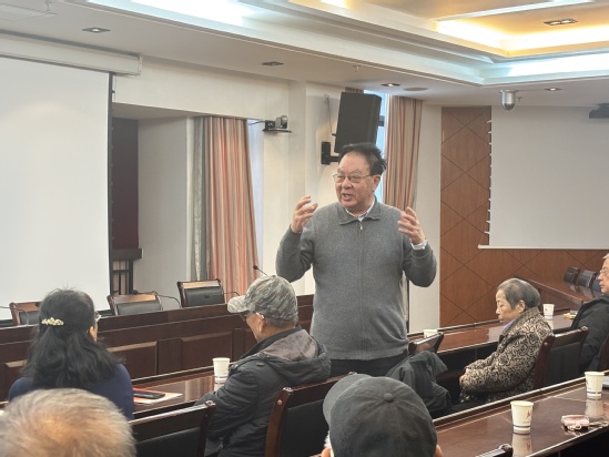最后,校老教授协会会长曹家麟作总结发言。他对两位老教授的精彩分享表示感谢,认为讲座内容既紧扣时代脉搏,又富含历史底蕴,为大家带来了宝贵的精神食粮。他指出,这样的活动有助于老同志们保持学习热情,紧跟时代步伐,同时传承红色基因,不忘初心、牢记使命。他表示,校老教协将继续搭建更多交流平台,丰富老教授的退休生活,促进老有所学、老有所乐、老有所为。