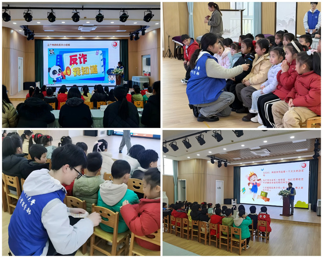 签约仪式后,我校“E路领航”学生志愿者团队为幼儿园大班的小朋友们带来了一场以“安全防诈”为主题的AI互动小课堂。志愿者们巧妙结合人工智能技术应用场景,用动画视频、智能语音互动等形式,生动讲解如何识别“假冒熟人电话”“虚假退款链接”等常见诈骗手段,引导孩子们在趣味体验中提升安全意识和科学素养。
