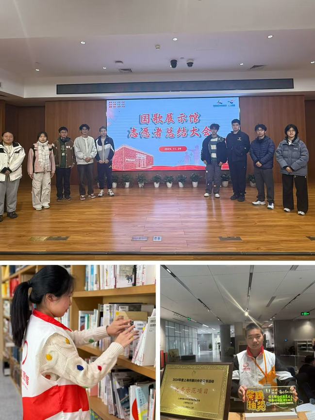 在国歌展示馆,志愿者们积极参与文化遗产保护与传承主题讲座学习,深入讲述国歌诞生背后的感人故事。据悉,自2012年与国歌展示馆共建以来,学部已连续十余年组织学生参与场馆志愿服务,累计参与600余人次,20余名志愿者获评“优秀志愿者”,学院也连续八年获得“国歌展示馆志愿服务优秀集体”称号。在上海图书馆,志愿者们协助工作人员整理书籍、引导读者,在书香中传递志愿温暖,以服务奉献擦亮青春底色。