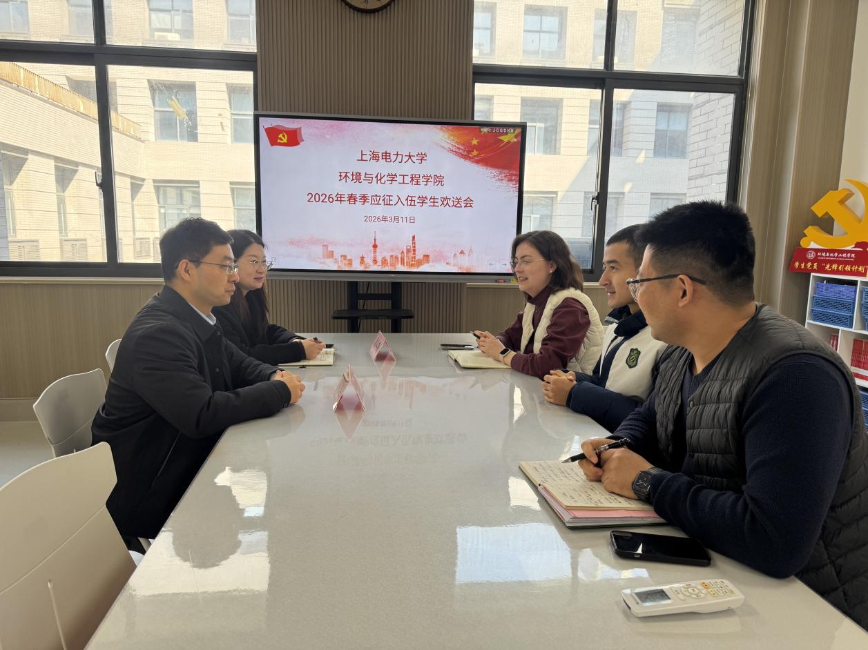 春潮涌动催征帆,报国壮志启新程。3月11日,环境与化学工程学院在A207会议室召开2026年春季应征入伍学生欢送会。学院党委书记常华、党委副书记周冬梅、辅导员木尼拉出席会议,2026年春季预入伍学生艾力扎提·买买提明参加本次欢送会,会议由学院征兵联络员王涛主持。