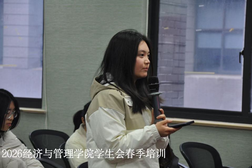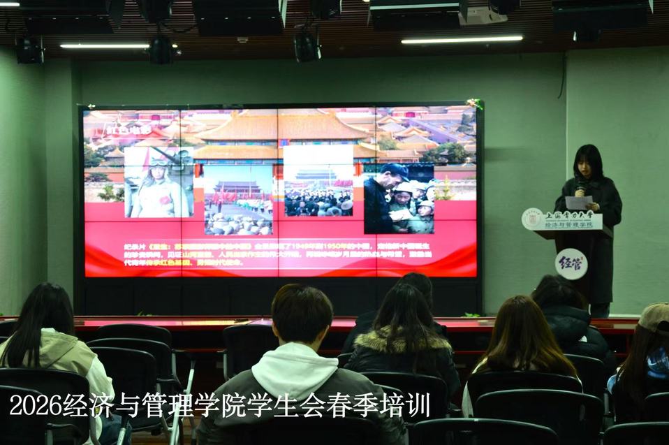 为深入学习红色精神,强化学生会团队协作能力,上海电力大学经济与管理学院学生会于2026年3月20日在经外楼A305开展春季培训活动。本次培训通过观看红色影片、红色精神分享、团队协作研讨等形式,为新学期学生会赋能。
