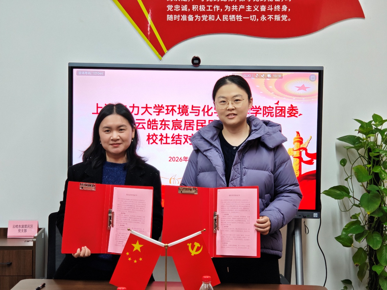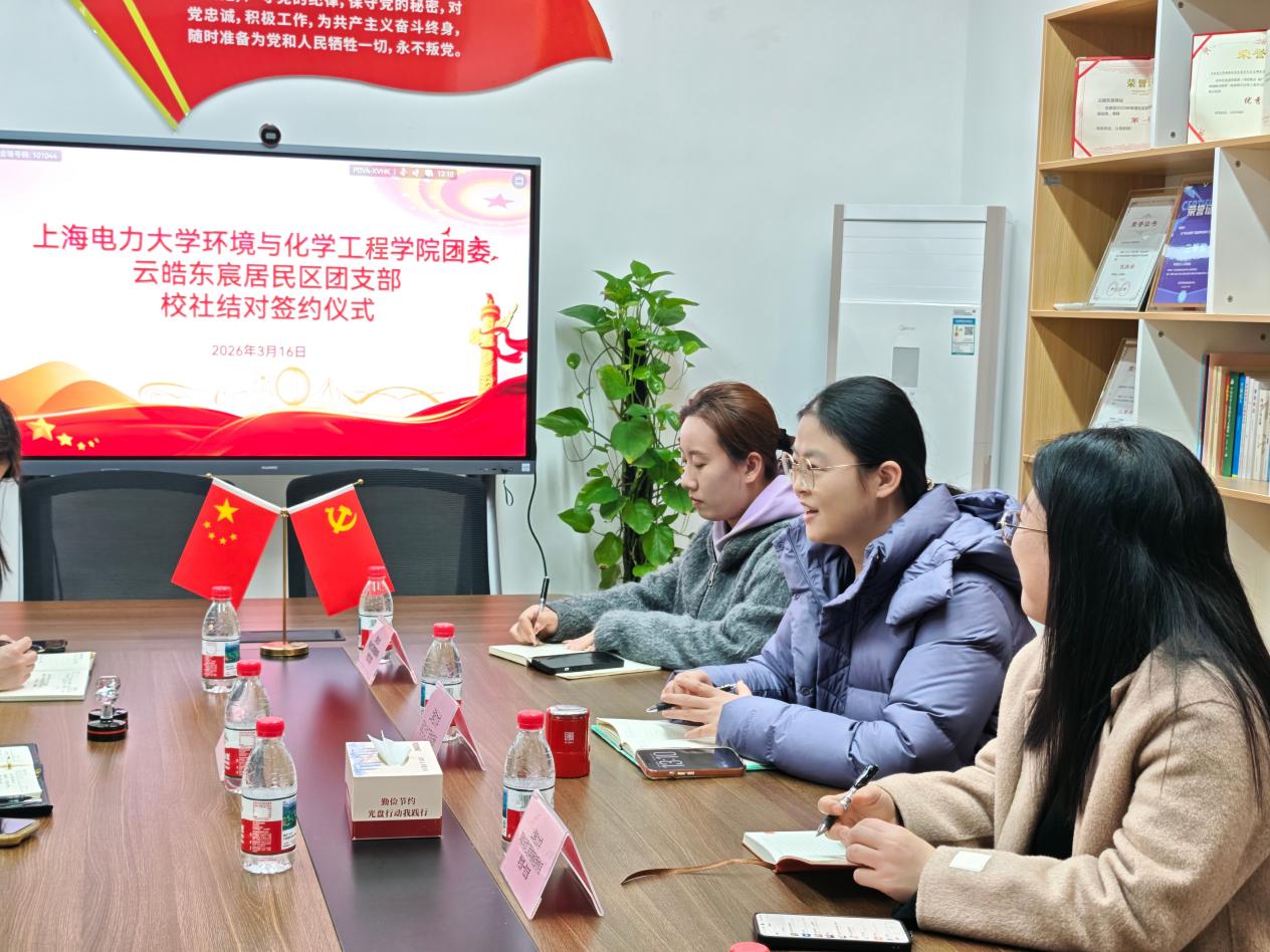 为进一步搭建校社联动平台,推动高校专业优势与社区发展需求有效对接,3月16日,环境与化学工程学院团委与南汇新城镇云皓东宸居委、新能源材料系学生第一、第二党支部与南汇新城镇云皓东宸居民区党支部联合开展了校社结对签约活动。环化学院团委书记张亦男、新能源材料系学生第一党支部书记孙晓华、新能源材料系学生第二党支部书记李海蒂及学院学生部门干部代表,云皓东宸居委会主任、党支部书记刘艺花等共同出席仪式。