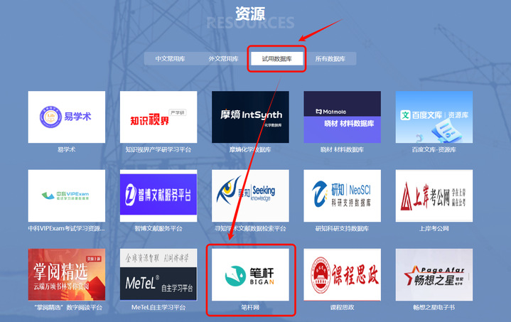 或通过路径“图书馆主页 / 试用数据库 / 笔杆网”访问