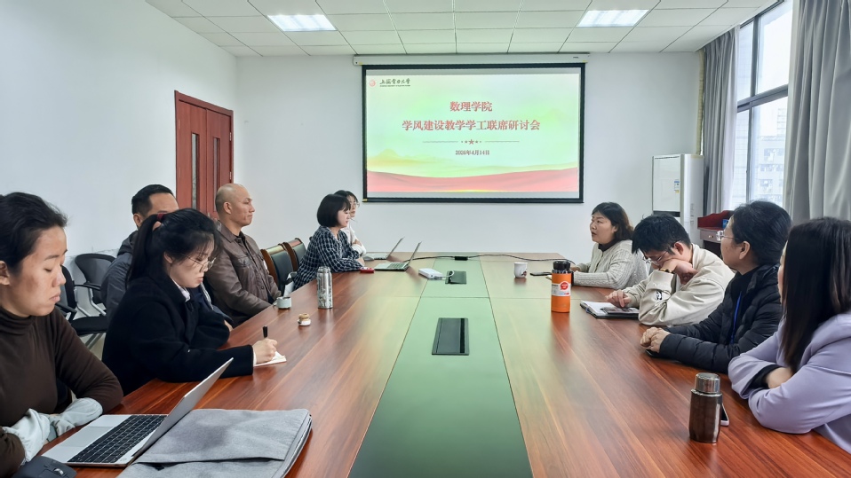 为进一步强化学院学风建设,凝聚教学与学工育人合力,4月14日,数理学院在学院B301召开学风建设教学学工联席研讨会。学院党委副书记赵月琴、党委委员、院务秘书竺筱晶,系主任、教研室主任、教务员及全体辅导员参会,会议由赵月琴主持。