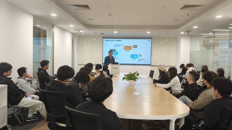 师生们参观了企业发展介绍展厅。通过生动详实的讲解和直观的展示,同学们对金蝶集团的发展历程、业务范围以及在云计算领域的创新成果有了更为深入的认识。