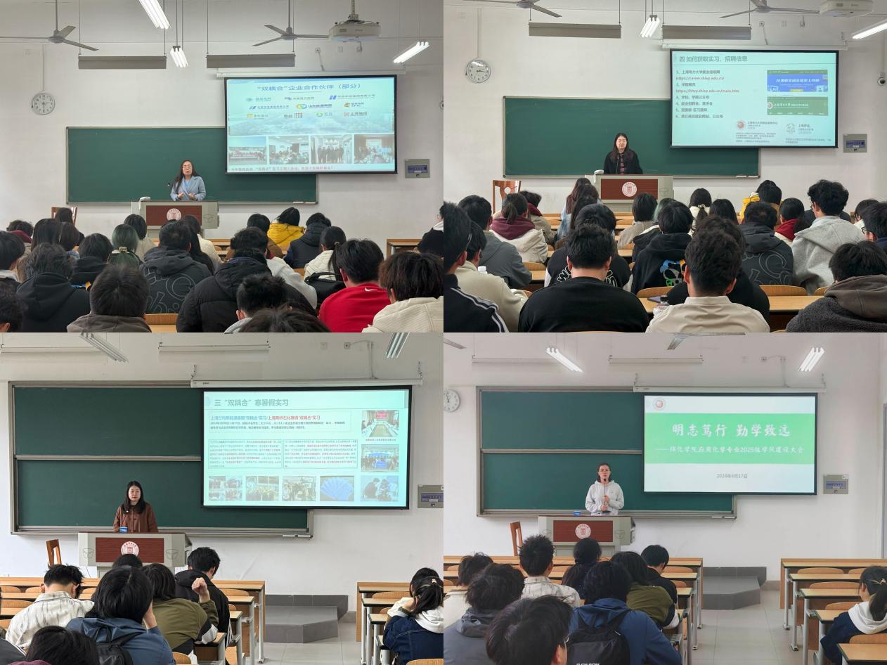 双耦合赋能实践,点燃假期增动能。针对实习实践这一人才培养的关键环节,会上重点强调“从大一开始做好规划”的重要性。周冬梅系统宣讲了实习实践相关政策,明确指出参与高质量实习实践是提升综合能力、增强就业竞争力的必由之路,并重点介绍了学校“双耦合”人才培养计划;分享了学院组织学生赴上海兰钧新能源、上海高桥石化公司开展“双耦合”实习实践取得的丰硕成果,号召全体同学积极关注并踊跃参与暑假即将启动的“双耦合”项目,争当“双耦合”学生主理人,在真实产业场景中检验所学、锤炼本领、拓展视野。