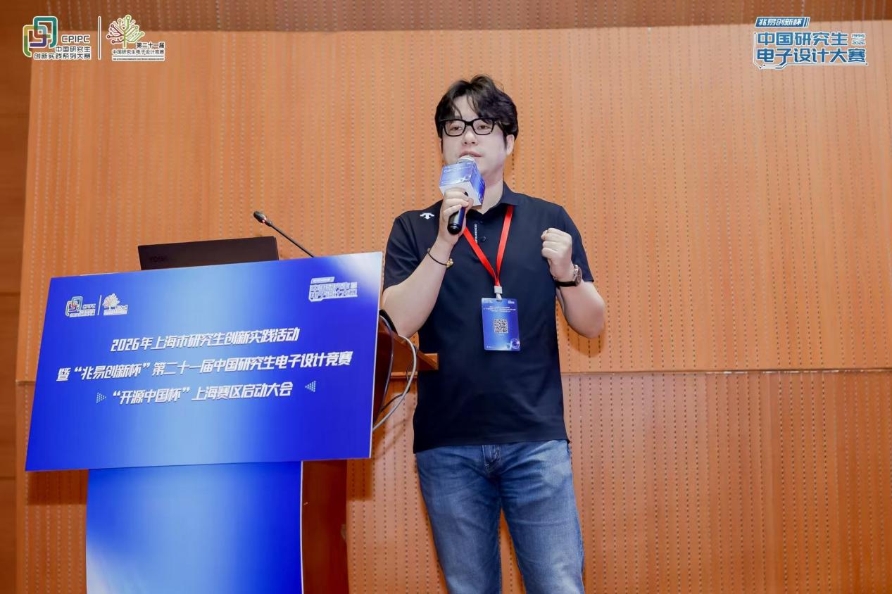 李晨作为企业代表发言,介绍了开源生态与赛事深度融合的合作规划。他表示,开源中国将持续通过企业命题、技术指导、人才对接、专项奖励等方式,推动开源技术与电子设计创新深度结合,搭建校企协同育人桥梁,助力青年创新人才成长和产学研用一体化发展。
