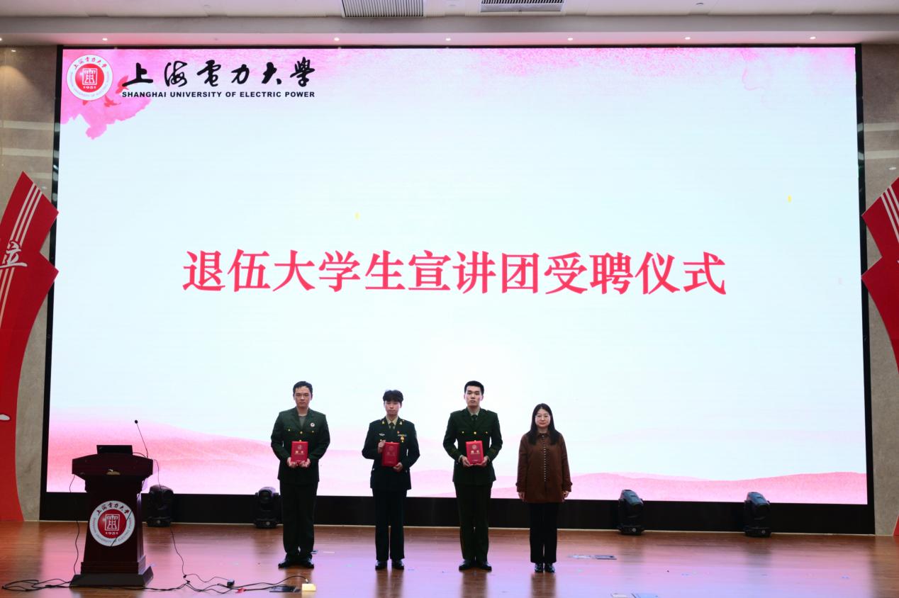 在“退伍大学生宣讲团”聘任仪式环节,周冬梅为侯天杰、潘阳、曹毅豪三位优秀退役大学生士兵颁发聘书,鼓励他们继续赓续军人本色、展现军人风采,讲好军营故事、传播强军正能量,当好学院征兵宣传工作的“先锋号”。