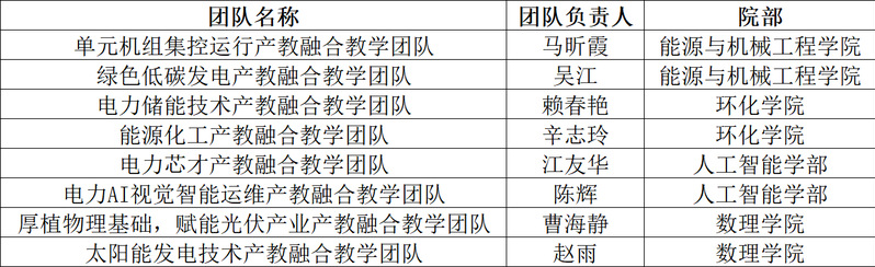 根据《关于开展2026年上海电力大学产教融合优秀教学团队选拔工作的通知》要求,学校组织开展了产教融合优秀教学团队评选工作。经团队申报、院(部)推荐、专家评审等环节,现已完成评选工作,拟确定以下团队为2026年上海电力大学产教融合优秀教学团队: