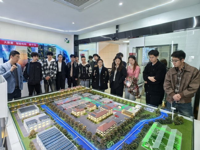 会前,同学们参观上海义阳新能源科技有限公司产业园区、发展历程展览区、文化墙等展区,对公司发展历程、当前建设情况有了更深入的了解。陈智勇为同学们讲解公司的综合能源平台研发成果及未来发展规划,为同学们解答疑问,让同学们对公司概况有了更加深入的了解。