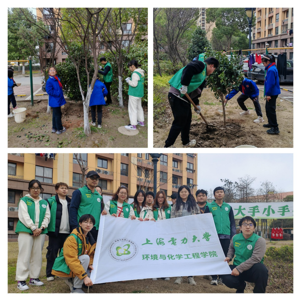 突出社会服务,拓展劳动教育“新维度”。学院始终坚持将劳动教育与社会服务紧密结合,组织开展“学习雷锋践行动,志愿服务进社区”主题教育活动,积极拓展劳动实践场所,引导学生在社会服务中增长见识、提升才干。以 “植此青绿”为主题,学院联合宜浩欧景社区、临港明珠小学开展 “大手牵小手・绿动校园”系列环保实践活动。活动中,大学生们与社区居民、小学生分组协作,共同打造 “社区共建林”,改善了社区生态环境。志愿者们用专业知识向小学生详细讲解植树要点,向居民普及生态环保知识,并将专业知识转化为通俗易懂、可操作的环保方案,让环保理念深入人心。