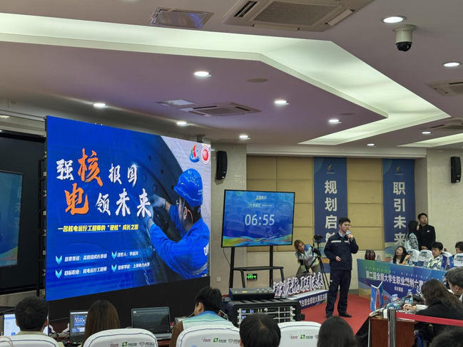 本届大赛累计报名学生1507万人,覆盖高校2763所,经过激烈角逐,750余名大学生脱颖而出,晋级全国总决赛。在总决赛现场,李威鸿以“强核报国,电领未来”为主题,深情讲述自己的职业规划。他立足国家需求及产业需要,依托我校能源电力特色资源,立志成为一名守护核电机组安全运行的“黄金人”——核电运行工程师。在总决赛上喊出了“沐光而行,初心无悔,做追光逐绿的硬核青年,祖国双碳目标实现的道路上,有我!”的响亮口号,以实际行动彰显上电学子胸怀“国之大者”,助力国家能源电力绿色低碳转型的价值追求。