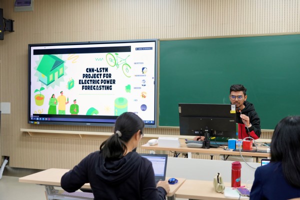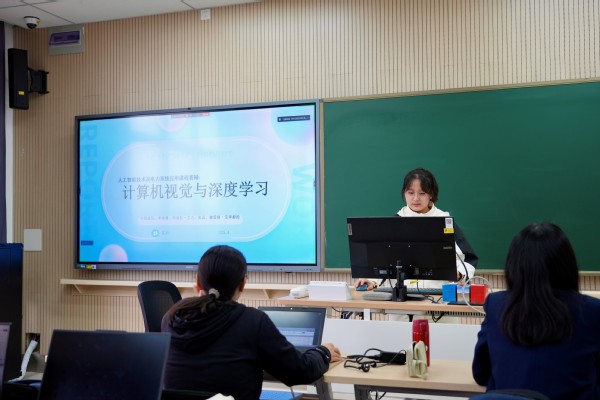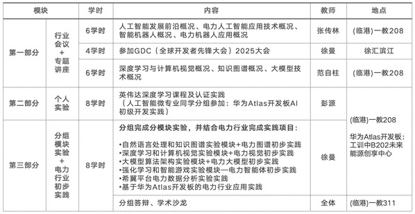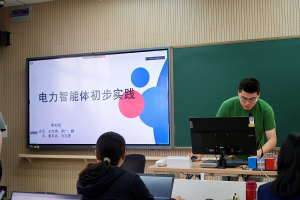 全体同学参加了由上海市人工智能行业协会主办的“2025GDC全球开发者先锋大会”,并听取校内人工智能领域两位专家教授的前沿讲座,开阔了视野,为后续综合实践奠定了理论与行业发展及应用背景知识基础。英伟达深度学习认证课作为深度学习的入门课,以理论加实训实操的形式为学生打开了人工智能实践的大门。实验部分贯彻团队合作学习、个性化学习的理念,以分组分模块的形式开展,其内容包括课程组与希冀平台共研的四个模块自动测评实验,以及与华为公司共建的Atlas200DK开发板实验。在综合实践部分,为激发学生创新意识,进一步培养学生团队协作与工匠精神,引导学生深入探究人工智能技术与能源电力实际场景的结合,在分组分模块实验的基础上,初步设计开发能源电力行业应用实践。同时,多名人工智能方向的研究生助教全程参与实验实践指导。在课程结束时,由班委组织课程展示交流沙龙活动,答辩成绩由各学生团队和教师团队共同打分进行综合评价。
