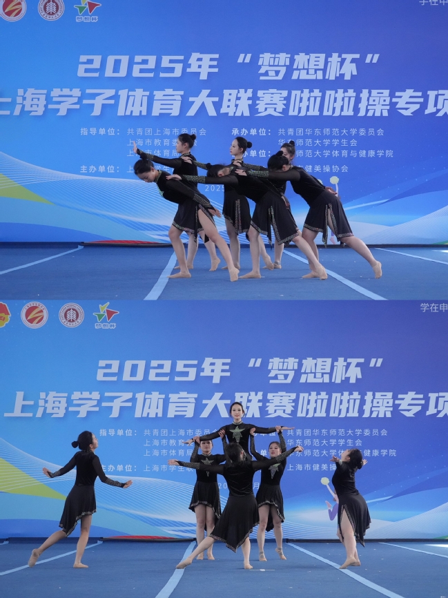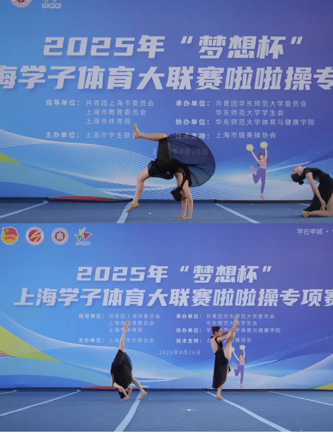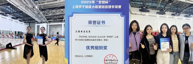 由共青团上海市委员会、上海市教育委员会、上海市体育局指导、上海市学生联合会主办,“梦想杯”上海学子体育大联赛啦啦操专项赛于4月26日在华东师范大学(闵行校区)体育馆举行。本次赛事共吸引申城41所高校的692名学子同台竞技,我校啦啦操队在外国语学院团委书记赵梦嫄的带领下,以精湛技艺与出色发挥斩获“自选动作双人爵士啦啦操第三名”和“规定动作爵士啦啦操第六名”。我校荣获“优秀组织奖”。