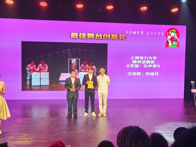 本届大学生话剧节共有116部作品参赛。经过评委们严谨认真的评选,入围线下决赛展演的剧目作品24部。我校大学生话剧团(精灵话剧团)时隔五年携精心打磨的长剧剧目《实验:玖伊零》再次回归上海市大学生话剧节,进入决赛展演。该剧凭借独特且富有创意的舞美设计、灯光设计和服装设计以及所有演员们出色的表演和团队辛勤的付出,最终斩获最佳舞台创意奖与优秀演出团队奖两项大奖。