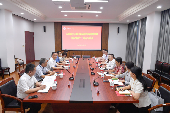 9月19日上午,上海出版印刷高等专科学校校长栗建华一行来校访问交流,党委副书记、校长顾春华会见来宾一行。上海出版印刷高等专科学校副校长杨爱玲参加会谈。