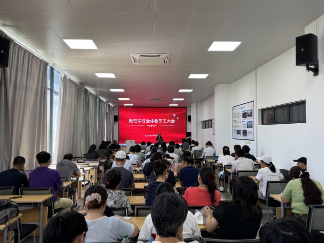 9月26日,数理学院召开2025年秋季学期全体教职工大会,总结上半年工作,共商学院发展新蓝图,部署新学期重点工作。学院班子成员及全体教职工参会,会议由数理学院党委书记徐广新主持。