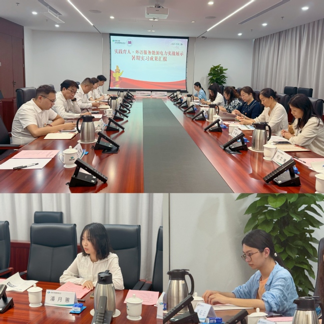 外国语学院派往该企业的两位学生汇报暑期实习情况。潘月蕙同学在中国电气装备集团非洲事业部实习期间,参与摩洛哥光伏等多个境外项目,运用多语能力完成技术文档翻译与现场协调,有效提升项目信息的准确传递与本地化对接效率。王昊阳同学在能源电力国际传播实践中,参与术语库建设与外宣材料编译,借助计算机辅助翻译工具实现高效多语协同,助力企业国际化传播。