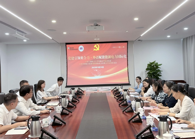 10月10日下午,外国语学院英语专业教工党支部与中国电气装备集团国际电力公司党支部于集团总部联合举办“党建领航筑根基,外语联通促共赢”主题党日活动。外国语学院党委书记余静、副院长冯为兰,国际电力公司党支部书记张耀武(董事、副总经理,主持工作)、副总经理李晋,以及双方党员代表出席活动。活动由企业综合管理部负责人韩超主持。