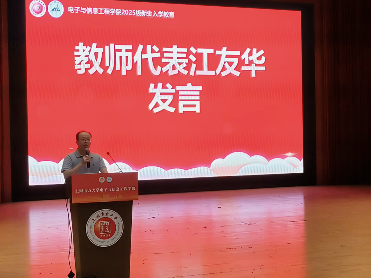 教师代表江友华教授结合自身经历与学科知识,为全体新生讲授了一堂生动的思政课。他强调,大学是一片比高中更为广阔的天地,不仅要掌握专业知识,更要注重将书本知识转化为解决实际问题的能力和未来的职业竞争力。江友华勉励同学们积极参与课程实践,在动手操作中深化理论理解;同时,要主动投身于各类电子类学科竞赛,以赛促学、以赛促练,全面提升自身的创新实践与综合素养,为成长为卓越的工程科技人才奠定坚实基础。