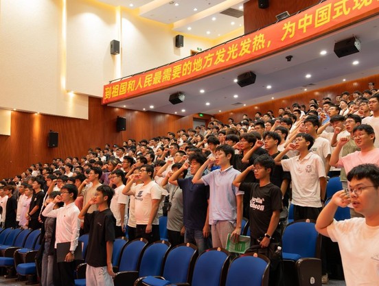 最后,研究生新生张博楠带领全体新生进行入学宣誓,郑重承诺将铭记校训,践行院训,传承时代精神,勇担青年使命,把个人理想追求融入党和国家事业之中,以青春之我、奋斗之我,为电力强国梦奋斗终身!