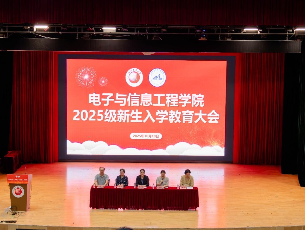 为更好的引导2025级新生尽快适应大学环境,扣好大学生涯的“第一粒扣子”,电子与信息工程学院于10月10日下午在大学生活动中心演艺厅召开2025级新生入学教育大会。学院党委书记何西培、党委副书记周冬梅、副院长赵琰、副院长薛亮,及学院教师代表、新生辅导员、全体2025级本科生和研究生新生参加大会。会议由周冬梅主持。