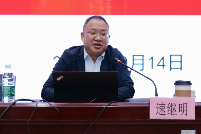 随后举行首场专题报告。速继明教授以《新时代意识形态安全及其治理》为题,围绕意识形态建设的新要求与网络舆情等内容展开深入讲解。他指出,新形势下意识形态领域斗争依然复杂,存在信息“逆差”、软实力与硬实力“反差”等现实问题,为此,要强化理论武装,既善于讲故事、也善于讲道理,真正用好互联网这一宣传思想工作的主阵地。他强调,“网权就是主权,网土就是国土,网域就是疆域”,要持续强化思想引领,创新传播方式,有效引导舆论,精准把握青年文化特质,积极构建多元主体共同参与的网络社会综合治理新格局。