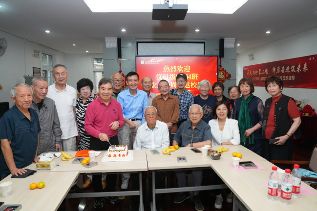 返校日清晨,秋阳和煦。从上午九点起,校友们便陆续从各地赶来,在杨浦校区第一教学楼处有序签到。熟悉的林荫道上,随处可见久别重逢的感人场景,校友们紧握双手、热情地拥抱,以及那一声声穿越数十年的亲切问候。