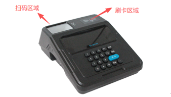 3)在食堂窗口,待工作人员输入消费金额后,将手机二维码置于POS机扫描区域上方(POS机扫描区域如下图所示),即可完成支付。所付金额将直接从您的校园一卡通账户中扣除。