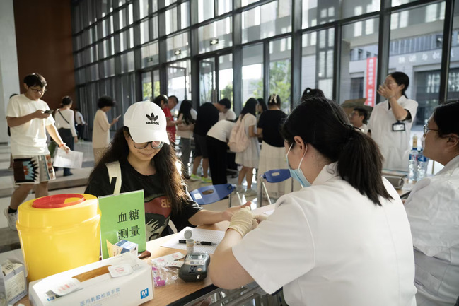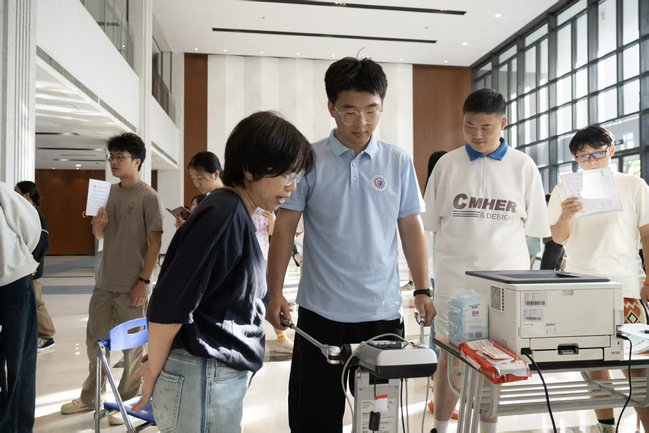 讲座结束后,同学们纷纷体验了中医智能镜检测、Inbody体成分检测、中医体质辨识小程序测试及血糖、血压检测的四项特色健康检测服务。