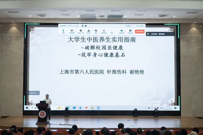 上海市第六人民医院针推伤科副主任医师谢艳艳从中医“望、闻、问、切”四诊合参理论延伸至“九种体质辨识”,并结合大学生熬夜的生活场景举例,传授按压头顶的“四神聪穴”可对抗疲劳与健忘等“调理锦囊”,并着重叮嘱大家务必养成固定于晚11点前入睡的节律。
