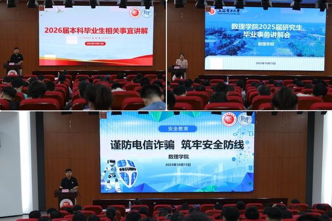 汪菲杨针对数理学院2025年硕士研究生招生进行宣讲,重点围绕学科平台、学位点设置、招生信息、研究生风采等方面介绍,帮助同学们深入了解学院的教育优势与培养特色,鼓励同学们找准方向,积极报考本校,并预祝同学们都能取得优异成绩,开启人生新的征程。